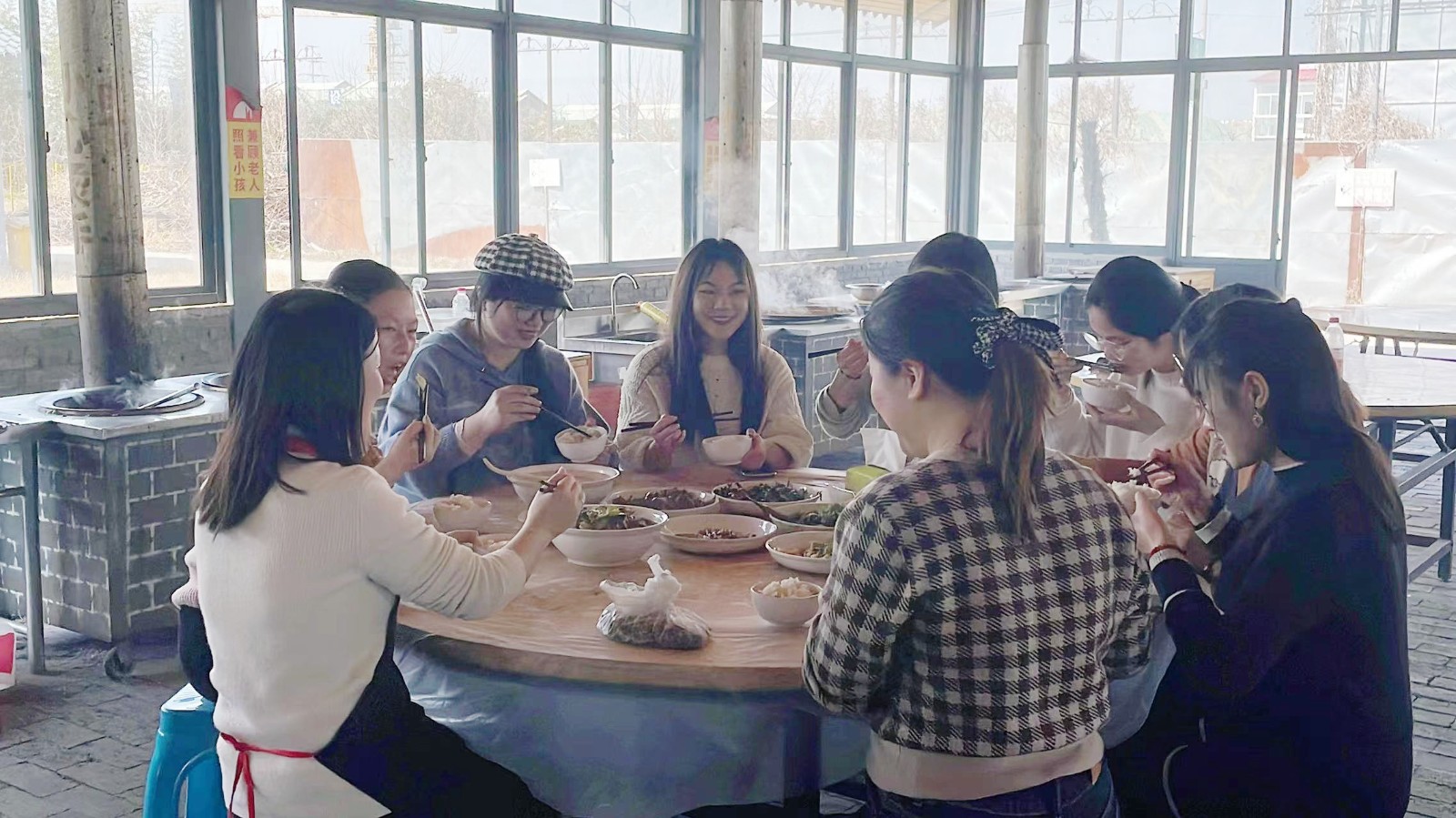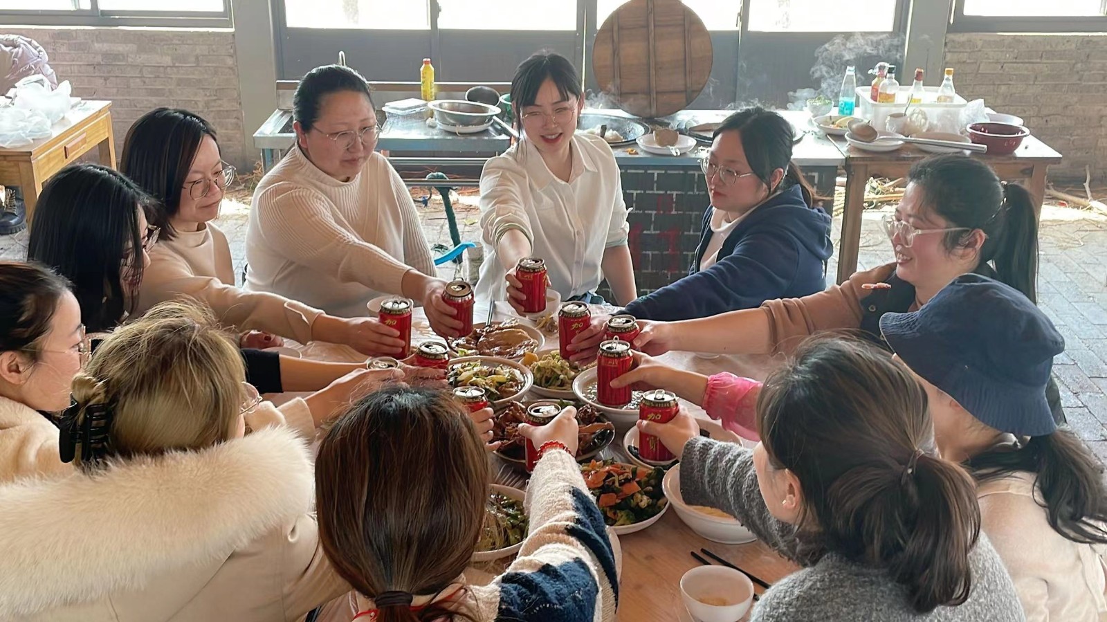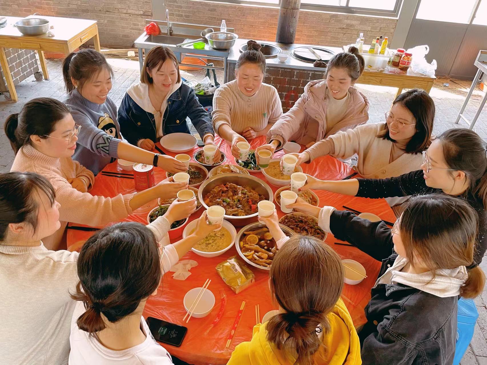 不一會,一桌桌豐盛的家常菜做好了,大家共同舉杯,共祝節(jié)日快樂,享受幸福時刻。